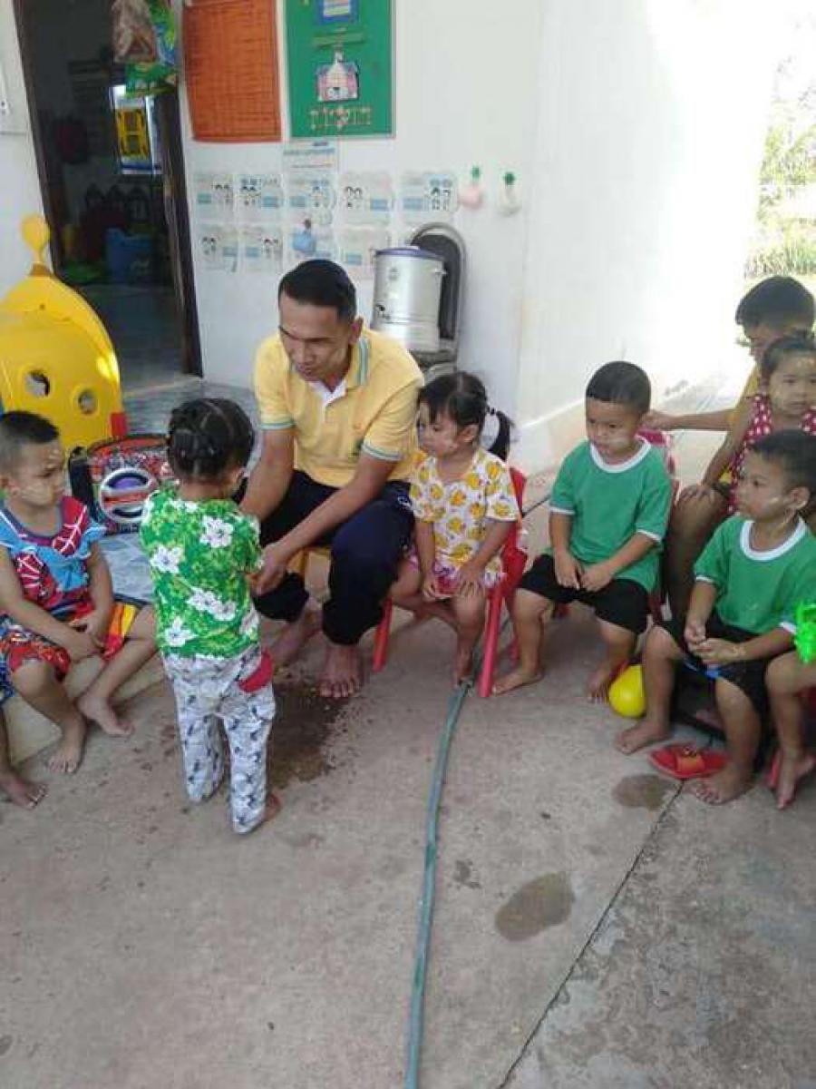 เด็กๆ ในศูนย์ฯ รดน้ำขอพรคุณครู และเล่นน้ำสนุกสนานแบบเด็กๆ (10 เมษายน 2562) S:0