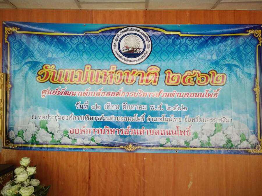ศูนย์พัฒนาเด็กเล็กองค์การบริหารส่วนตำบลถนนโพธิ์ จัดกิจกรรมวันแม่แห่งชาติ ประจำปี 2562 โดยได้รับเกียรติจากท่านรองนายกฯ สนอง ปรางค์นอก และท่านรองนายกฯ ฤทธิเดช ขอบังกลาง พร้อมทั้งสมาชิก อบต. กำนัน ผู้ใหญ่บ้านและผู้ปกครองร่วมกิจกรรมในครั้งนี้ S:0