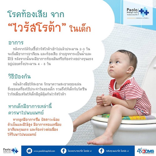 เป็นเชื้อไวรัสชนิดหนึ่งในหลายชนิดที่ก่อให้เกิดอาการท้องร่วงขั้นรุนแรง จะพบมากในเด็กเล็ก เมื่อเด็กๆ รับเชื้อไวรัสโรต้าแล้วประมาณ 1-2 วัน เด็กจะมีอาการอาเจียน เป็นไข้สูงเกิน 39 องศาเซลเซียส ในช่วงเริ่มแรกจะอาเจียนค่อนข้างรุนแรง วันต่อมาจะมีอาการท้องเสีย ถ่ายเหลว อุจจาระมีลักษณะเป็นน้ำ มีกลิ่นคาว และอาจทำให้เกิดภาวะร่างกายขาดน้ำขั้นรุนแรง ถ้าลูกน้อยเกิดอาการดังที่กล่าวมาทั้ง 3 อย่างนี้ ให้คุณแม่รีบนำลูกส่งโรงพยาบาลโดยด่วนเพราะอาจเกิดการติดเชื้อไวรัสโรต้าค่ะ