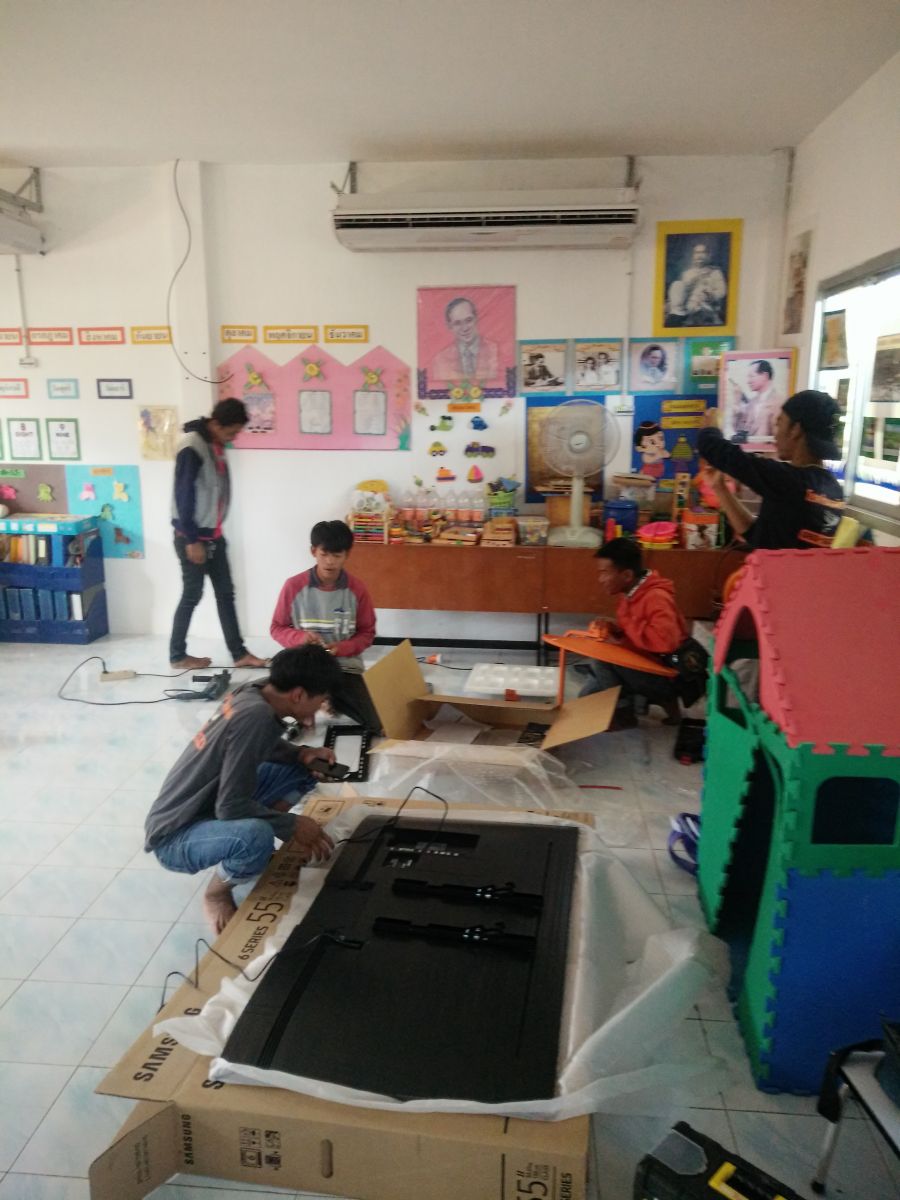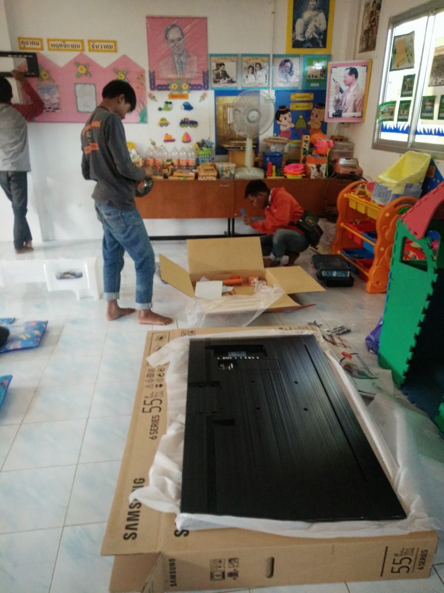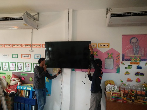 ติดตั้งพร้อมให้หนูๆ ได้เรียนรู้ประสบการณ์ใหม่ๆ เรียบร้อยแล้ว ทีวีขนาด 55 นิ้ว พร้อมช่องรายการเพื่อการศึกษา