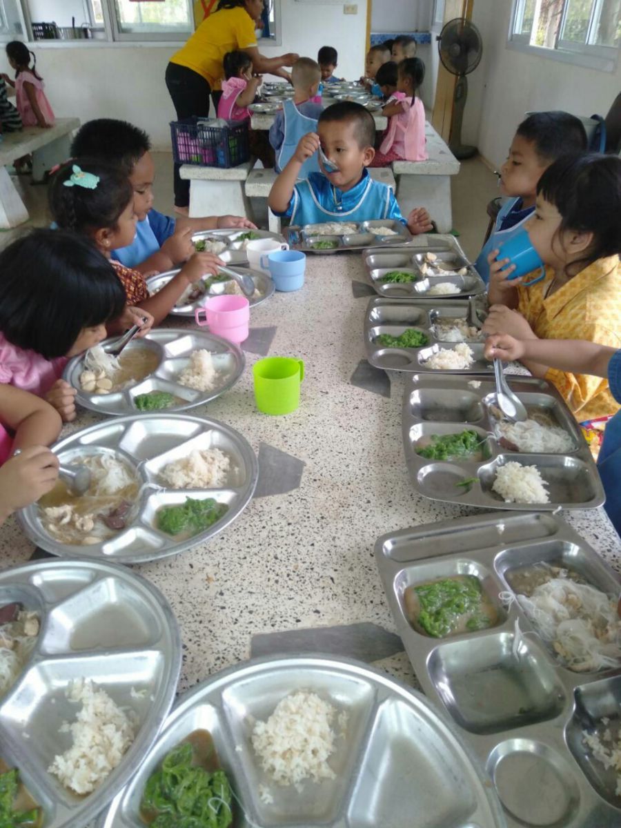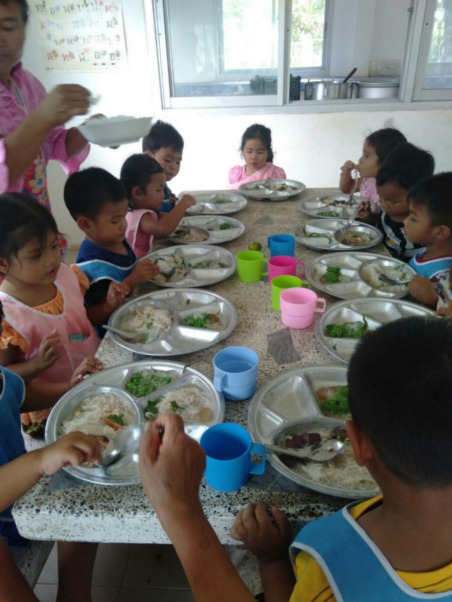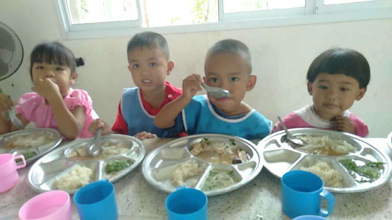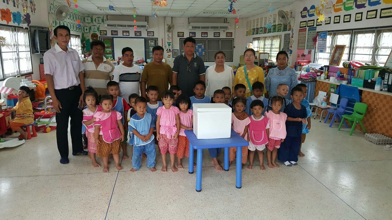 คุณสายฝน ขอพันดุง และครอบครัว มอบขนมลอดช่องเลี้ยงเด็กๆ ในศูนย์พัฒนาเด็กเล็ก อบต.ถนนโพธิ์