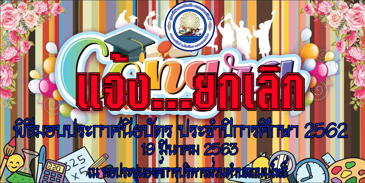 แจ้ง ยกเลิก...พิธีมอบวุฒิบัตรบัญฑิตน้อย ประจำปีการศึกษา 2562