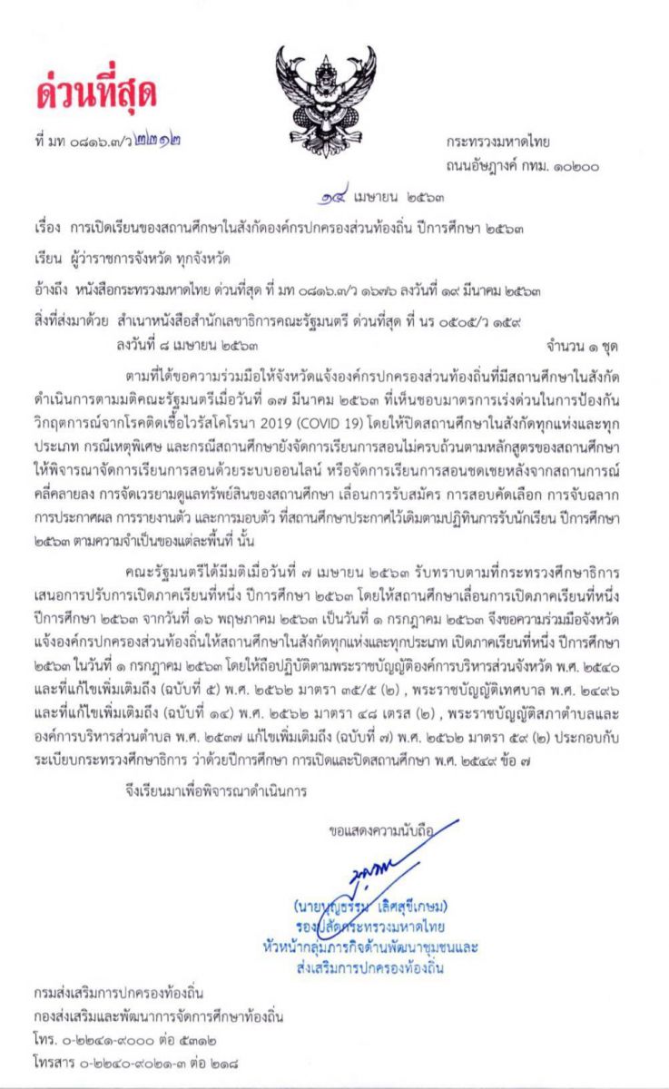 *** หนังสือกระทรวงมหาดไทย ด่วนที่สุด ที่ มท 0816.3/ว 2212 ลว. 14 เม.ย.2563 ***